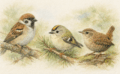 なお、イスカのヒナ(雛鳥)のくちばしは孵化した直後には普通の形をしています。生後約1〜2週間ほどで徐々に上下がずれ始め、自分で固い種子を食べられる時期になる頃に大人と同じように交差した形になることが知られています。また、くちばしが右上左下に交差する個体と、その逆(左上右下)に交差する個体がいますが、これは餌とする松ぼっくりの巻き方(螺旋の方向)に対応しているとも言われますが真偽は不明です。どちらの向きでもエサをとる能力に差はなく、イスカ本人にとっては問題ではないようです。